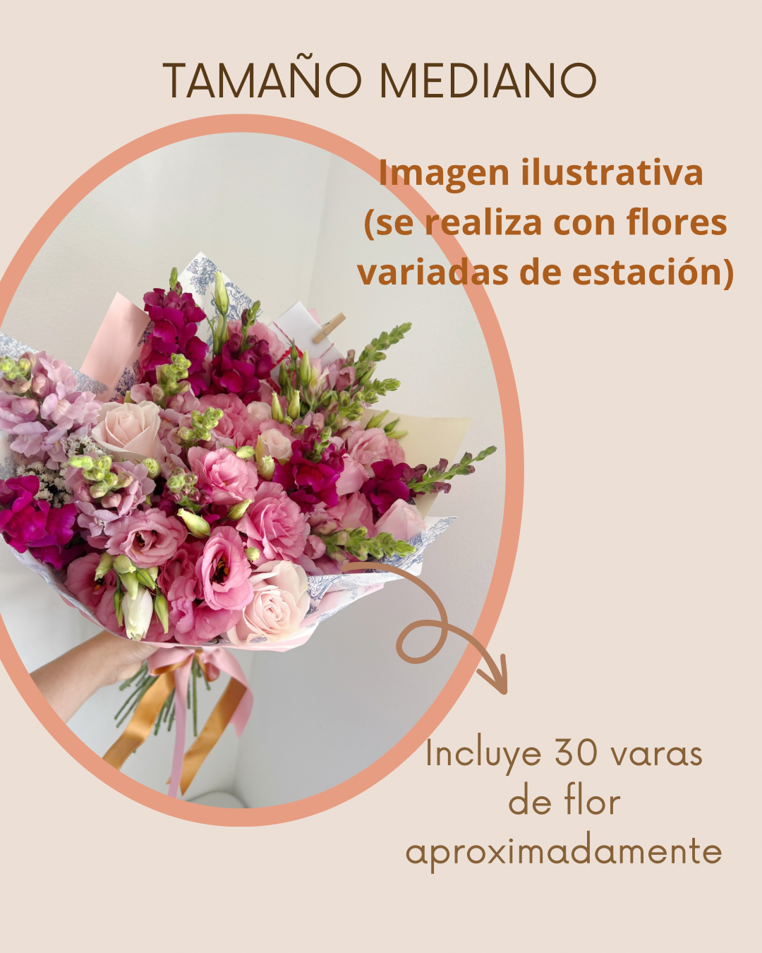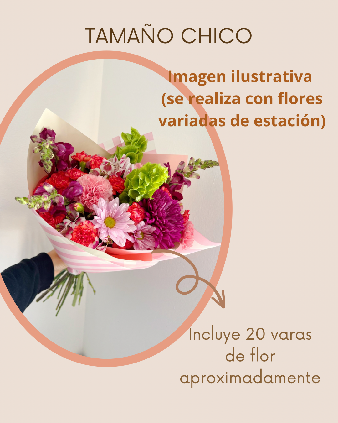 Ramo Tamaño chico: Incluye 20 varas de flor aproximadamente.