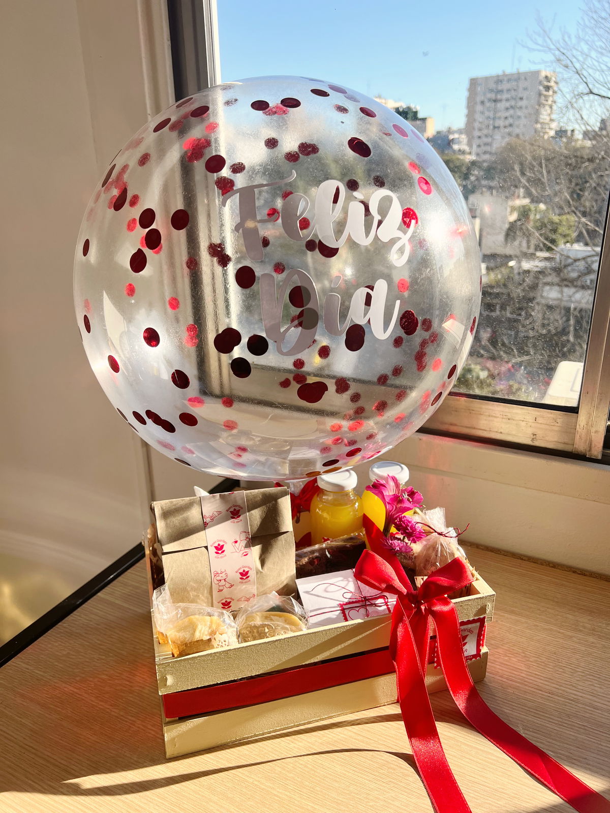 Una excelente opción si queres una linda presentación con un buen contenido comestible. El globo lo hace llamativo y vistoso.