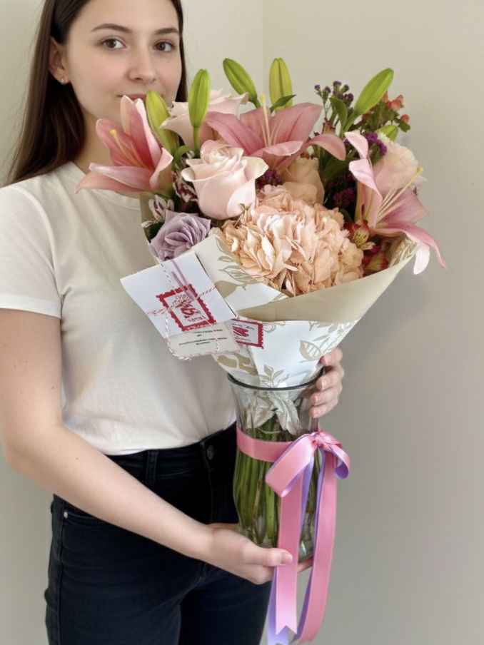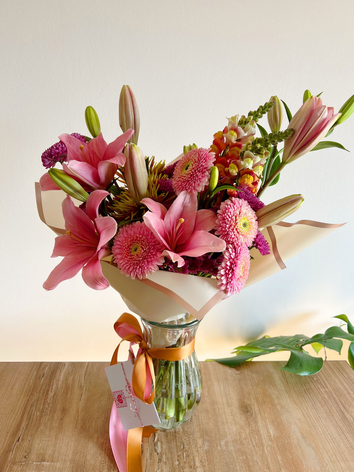 Este Ramo está compuesto por flores variadas de estación. El tipo de flor puede variar según el día y temporada. Se mantiene el estilo pero ningún ramo es igual a otro, cada uno es único.