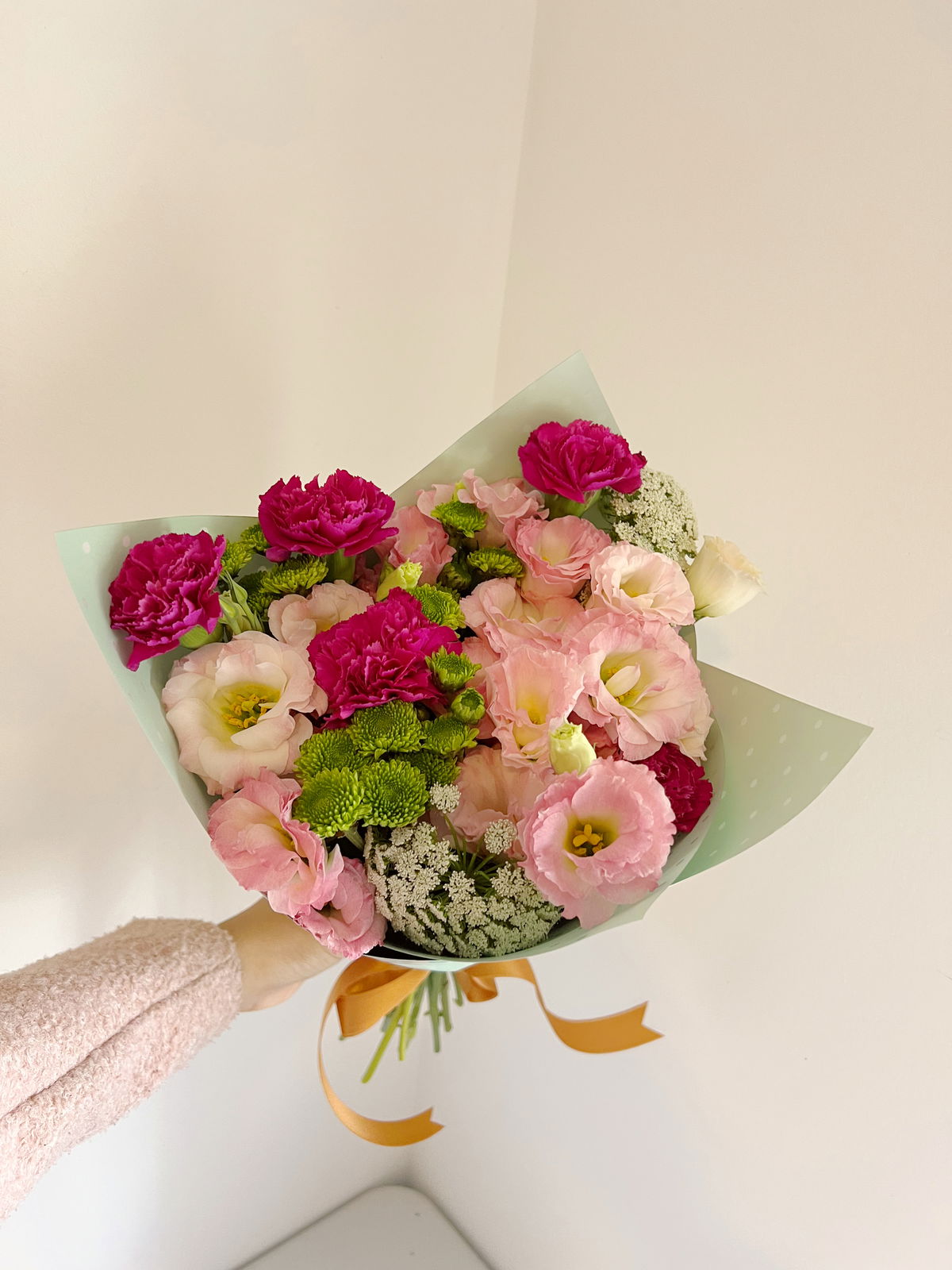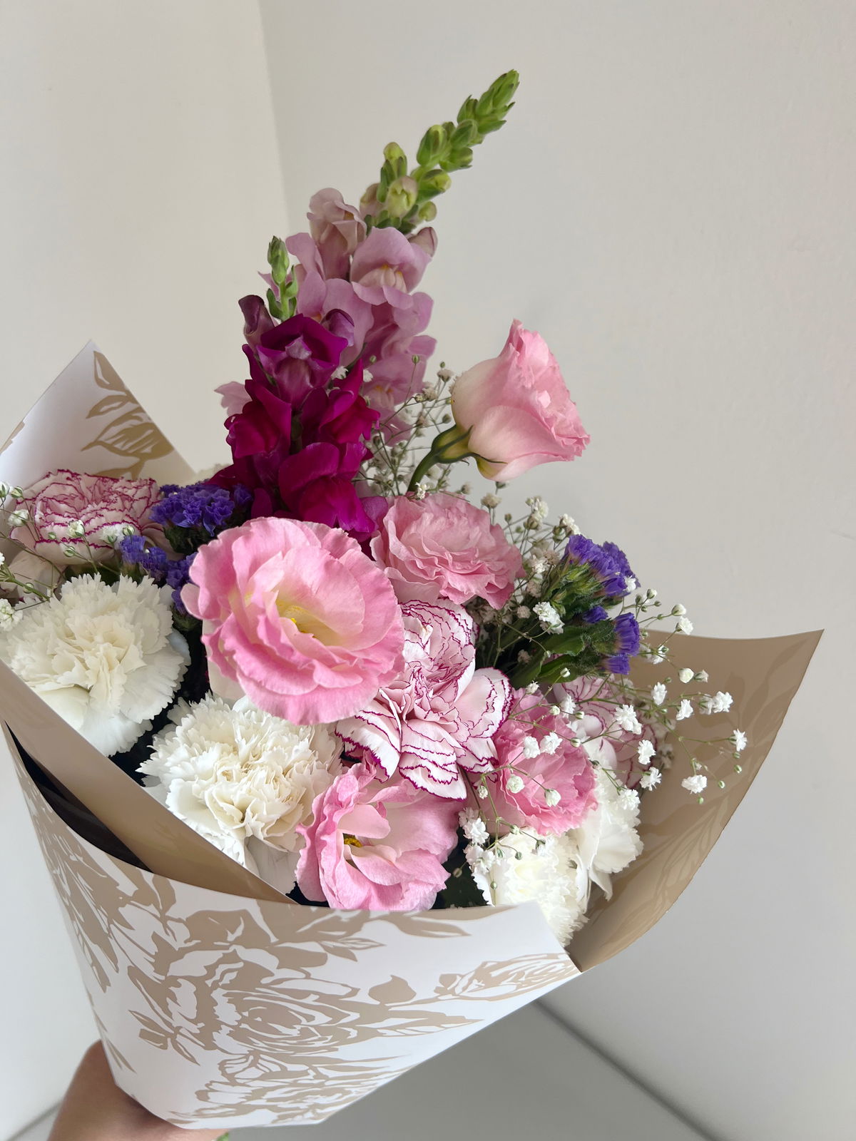 Este Ramo está compuesto por flores variadas de estación. El tipo de flor puede variar según el día y temporada. Se mantiene el estilo pero ningún ramo es igual a otro, cada uno es único.