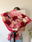 Este hermoso y romántico ramo está compuesto por rosas importadas color rojo y flores de estación en tonos rosa.
